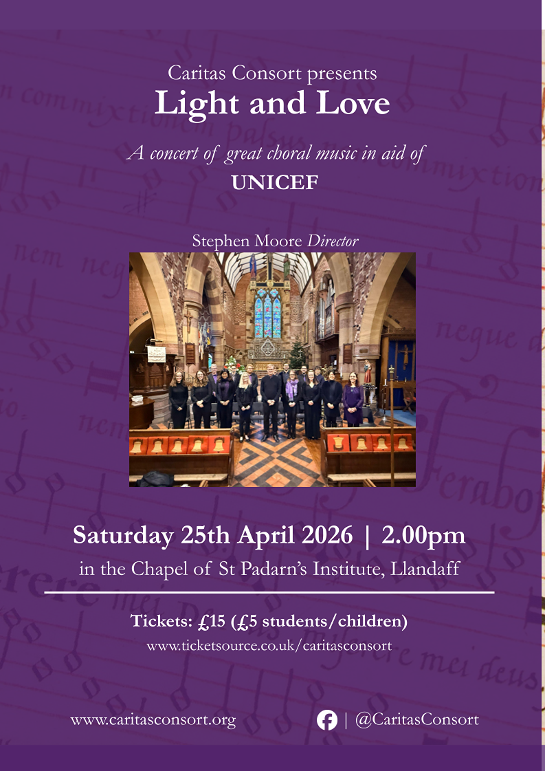 We are delighted to announce our next concert which is taking place on Saturday 25th April at 2pm in the Chapel of St Padarn's Institue, Llandaff.
